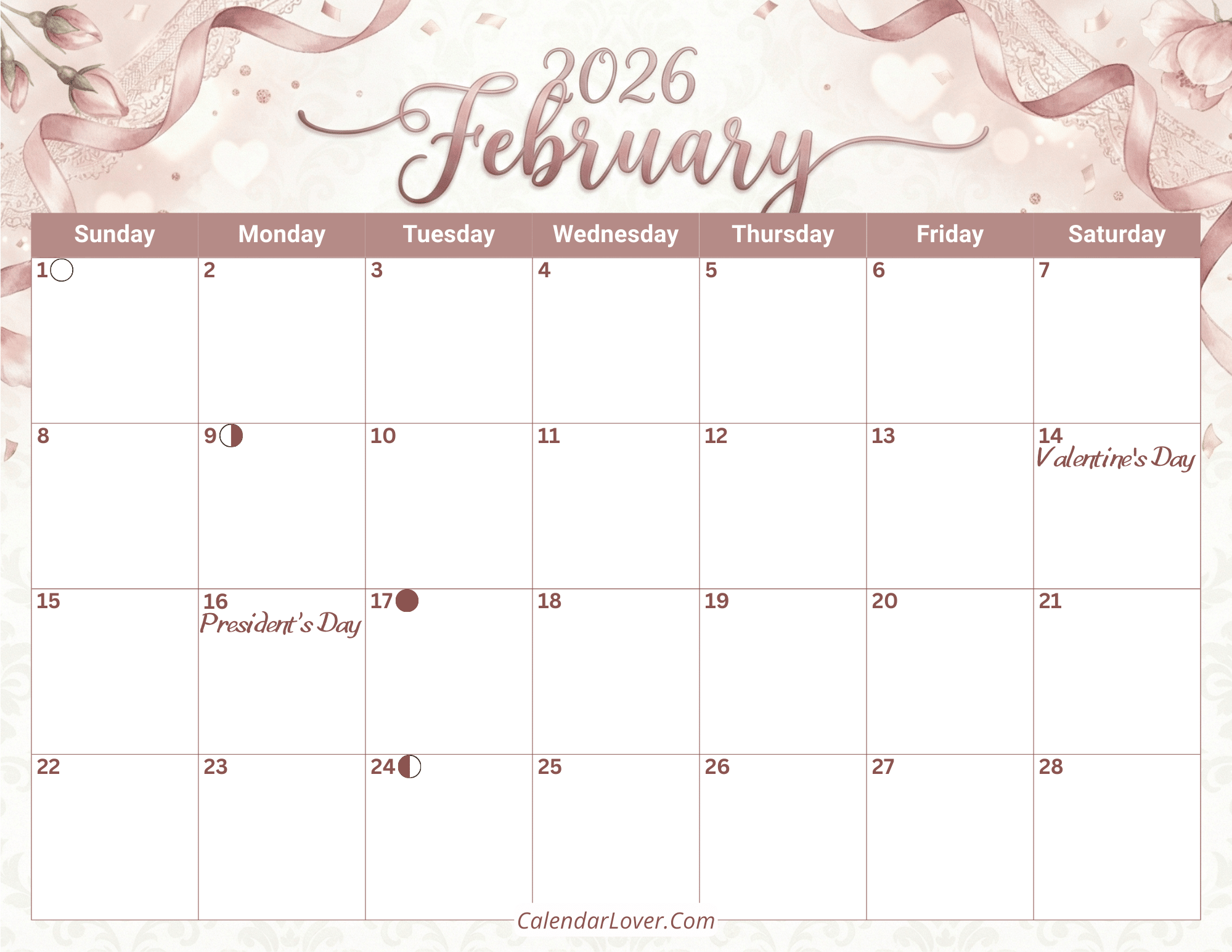 Aesthetic February 2026 Calendar Template